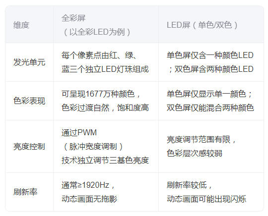 榆林全彩屏和LED屏是显示技术领域常见的两种设备,二者在显示原理、应用场景及技术特性上存在显著差异。